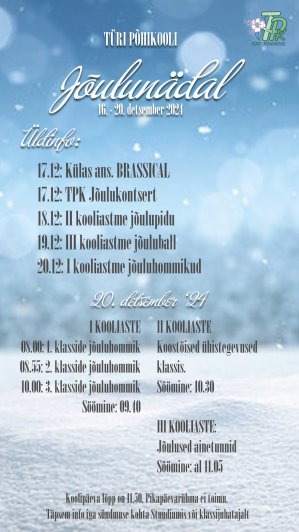 Asukoht Türi Põhikool Ava foto Jõulunädala INFO Vaata rohkem sündmusi Ava foto Avaldatud 09.12.2024. Viimati muudetud 09.12.2024.