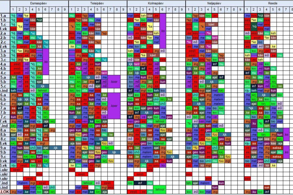 • Tunniplaan